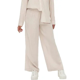 Wybierz lekkie i przewiewne spodnie Only w kolorze beżowym. Wykonane w 55% z lnu i 45% z wiskozy, posiadają szeroki elastyczny pas i prostą nogawkę o luźnym kroju. Rozmiar jest duży, zalecamy wybór mniejszego niż zwykle.