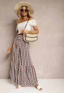 Pomarańczowo-Granatowe Wiskozowe Spodnie Palazzo z Gumką w Pasie i Wysokim Stanem Tiimabell