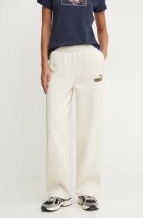Puma spodnie dresowe kolor beżowy z nadrukiem 681694