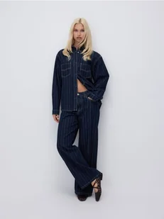 Trendyol Damskie spodnie jeansowe z wysokim stanem i szeroką nogawką, nocny granat, 60