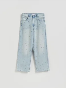 Reserved - Jeansy baggy z kryształkami - niebieski
