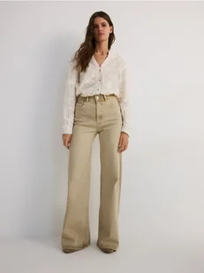 Reserved - Jeansy flare z wysokim stanem - beżowy
