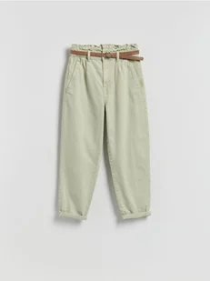 Reserved - Jeansy paperbag z paskiem - zielony