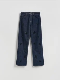 Reserved - Jeansy straight z aplikacjami - granatowy