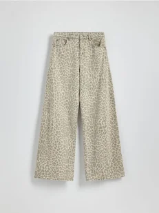 Reserved - Jeansy wide leg w zwierzęcy wzór - beżowy