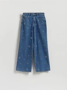 Reserved - Jeansy wide leg z kryształkami - niebieski