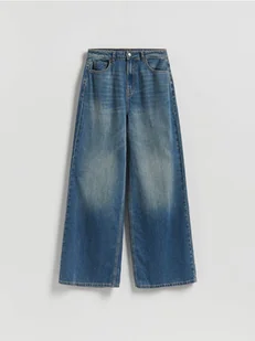 Reserved - Jeansy wide leg z przetarciami - indigo jeans