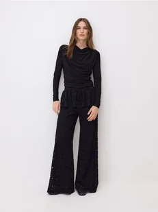 Reserved - Koronkowe spodnie z baskinką - czarny
