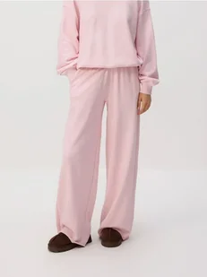 Reserved - Spodnie dresowe z szerokimi nogawkami - pastelowy róż