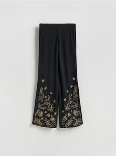 Reserved - Spodnie z haftem - czarny
