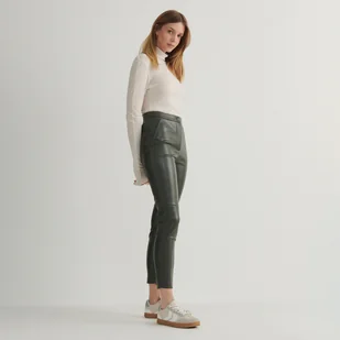 Reserved - Spodnie z imitacji skóry - oliwkowy