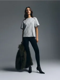 Reserved - T-shirt z koronkową aplikacją - jasnoszary
