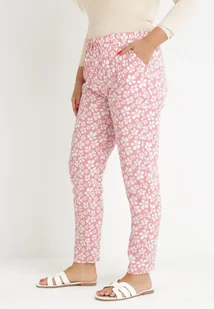 Różowe Kwieciste Spodnie z Gumką w Pasie z Wiskozy Fredise