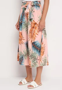 Różowe Spodnie Plisowane Typu Palazzo z Gumką w Pasie o Długości 3/4 Hiefia