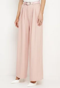 Różowe Szerokie Spodnie Palazzo z Wysokim Stanem i Paskiem z Ekoskóry oraz Metalową Klamrą Ninna