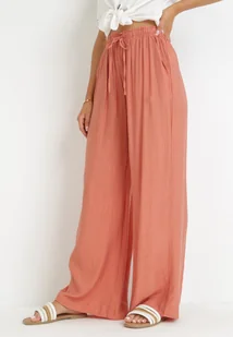 Różowe Brzoskwiniowe Szerokie Spodnie z Wiskozy Zyona