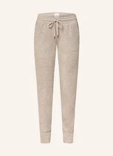 Elastyczny pas w talii z tunelem z troczkiem. Zwężane do dołu nogawki. Boczne kieszenie wpuszczane. Elastyczne ściągacze na końcach nogawek. Naszywka zmarką. Interlock