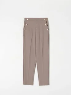 Sinsay - Eleganckie spodnie w kant - brązowy - ozdobne guziki po bokach,2 kieszenie z przodu,imitacja kieszeni z tyłu,elastyczna gumka z tyłu,nogawki w kant