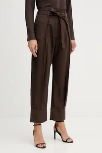 Sisley spodnie damskie kolor brązowy szerokie high waist 4ETSLF082