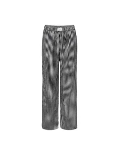 Długie spodnie Locklyn w czarno-białą kratkę łączą domowy komfort z klasycznym wzorem. Lekka, oddychająca bawełna otula ciało, a szerokie nogawki swobodnie opadają, tworząc luźny i elegancki efekt. Elastyczny pas gwarantuje wygodę, a uniwersalny krój sprawia, że świetnie sprawdzą się jako część zestawu do spania i relaksu. bawełna o naturalnej miękkości klasyczna kratka w czerni i bieli luźne, długie nogawki Skład materiału: