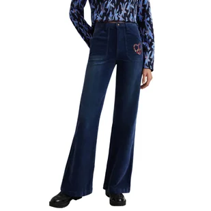 Spodnie damskie Desigual Myheart dzwony sztruksowe granatowe-S - DESIGUAL
