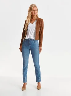 Spodnie damskie Top Secret długie proste. Ujmujące swym klasycznym i niezmiennie modnym stylem długie spodnie damskie o prostym kroju. Są one zapinane z przodu na guzik oraz suwak, będąc wzbogaconymi o praktyczne kieszenie zarówno z przodu, jak i z tyłu. Świetnie sprawdzą się jako element kreacji zarówno do pracy, jak i na co dzień. Zostały one wykonane z bardzo trwałej i miłej w dotyku tkaniny jeansowej.