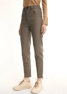Spodnie damskie uszyte z naturalnej skóry owczej. Model w kolorze szarym, o dopasowanej formie będzie świetną podstawą wielu codziennych stylizacji przez cały rok. kolor szary skóra naturalna owcza forma dopasowana zapięcie na suwak oraz guzik dwie kieszenie na suwak suwaki w nogawkach elementy metalowe w kolorze jasnego niklu Nasza modelka ma 176 cm wzrostu i nosi rozmiar S. Skład: skóra naturalna owcza Podszewka: 100% poliester