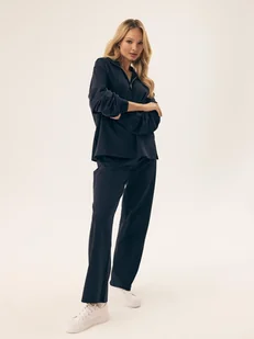 Granatowe spodnie Ramu Esotiq to połączenie klasyki i wygody, które sprawdzi się w każdej garderobie. Dzięki prostemu krojowi oraz subtelnemu przeszyciu na n...