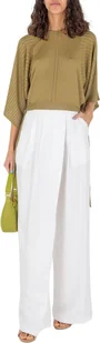 Spodnie marki Silvian HeachWygodny, luźny krójWysoki stan taliiFason typu Palazzo z szerokimi nogawkamiDwie wsuwane kieszeniePlisyw górnej części nogawkiZapinane na bok na guzikPodwójne szlufki na pasekIdealne na co dzień i wyjątkowe okazje! WYMIARYdługość całkowita - 116,5 cmszerokość w pasie - 39 c