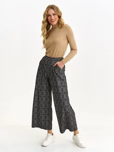 Spodnie damskie Top Secret w efektowną kratkę. Dzianinowe spodnie damskie o bardzo prostym stylu z szerokimi długimi nogawkami. Posiadają one nadruk na całości z wzorem w efektowną kratę oraz praktyczne kieszenie po bokach, a uroku dodaje im praktyczna gumka w talii z tyłu oraz wykonanie z przyjemnej w dotyku oraz delikatnej dzianiny. Sprawdzą się one świetnie w przeróżnych kobiecych stylizacjach okresu jesiennego i zimowego, będąc szczególnie polecane dla zastosowań casualowych. Spodnie dostępne w kolorze szarym SSP4337SZ.