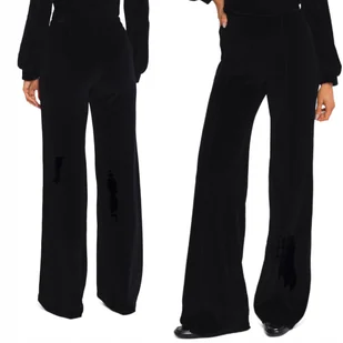 Spodnie Damskie Welurowe Z Szerokimi Nogawkami Czarne 44 XXL