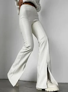 Spodnie damskie z ekoskóry z zamkiem - Biały