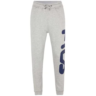 Materiał: 80% Bawełna, 20% Poliester Luźniejszy krój Elastyczny pas ze sznurkiem do regulacji Boczne kieszenie Ściągacze u dołu nogawek Duży napis FILA na całej długości nogawki