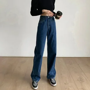 Spodnie jeansowe damskie z prostą nogawką - Ciemnoniebieski XXL