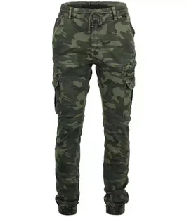 męskie bojówki moro w pasie gumka i troczek długie nogawki zakończone ściągaczem Męskie bojówki w ponadczasowe moro W pasie posiadają gumkę i troczek Stan st...