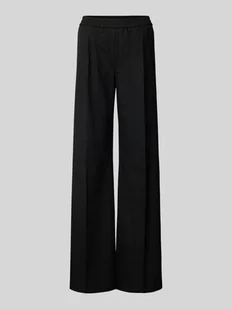 Spodnie materiałowe damskie HUGO;Mieszanka materiałów z dodatkiem wiskozy; Krój baggy fit;Model ‘Garos’;Elastyczny pas;Zakładki w pasie;Szerokość w pasie w rozmiarze S: 40 cm;Długość wewnętrzna nogawki w rozmiarze S: 87 cm