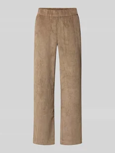 Spodnie materiałowe damskie ZABAIONE;Elastyczna mieszanka materiałów;Krój flared fit;Model ’Magdalene’;Imitacja sztruksu;Elastyczny pas;Szerokość w pasie w rozmiarze S: 38 cm;Długość wewnętrzna nogawki w rozmiarze S: 74 cm