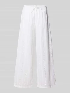 Spodnie materiałowe damskie Review;Czysta bawełna;Luźny krój;Elastyczny pas;Tunel;Haft angielski;Szerokość w pasie w rozmiarze S: 38 cm;Długość wewnętrzna nogawki w rozmiarze S: 78 cm