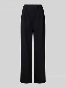 Spodnie materiałowe damskie Review;Mieszanka materiałów z dodatkiem wiskozy;Długa nogawka;Zakładki w pasie;Szerokość w pasie w rozmiarze S: 40 cm;Długość wewnętrzna nogawki w rozmiarze S: 81 cm