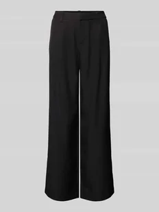 Spodnie materiałowe damskie Gina Tricot;Elastyczna mieszanka materiałów;Wide Fit;Zakładki w pasie;Kieszeń z tyłu;Zapięcie na haftkę i zamek błyskawiczny;Szerokość w pasie w rozmiarze S: 38 cm;Długość wewnętrzna nogawki w rozmiarze S: 79 cm