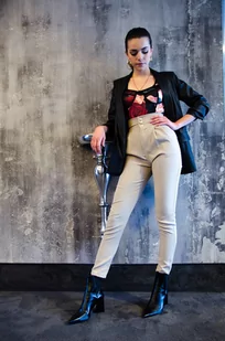 SPODNIE MATERIAŁOWE ZE ZŁOTYMI GUZIKAMI- BEŻOWE