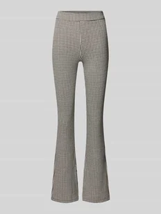 Spodnie rozszerzane damskie HUGO;Model ‘Narosetta’;Efekt: Wzór na całej powierzchni;Krój: Krój slim fit;Wzór: Pepitka;Stan: Wysoki stan;Aplikacja: