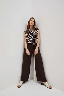100%POLIESTER Spodnie damskie w kolorze ciemnego brązu. Gładkie, bez dodatkowych wzorów. Wysoki stan, bardzo komfortowy w noszeniu. Zapinane na guzik oraz za...