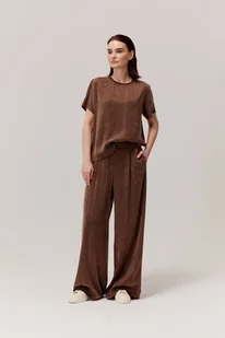 Zestaw Figro to połączenie minimalistycznego designu ze sportowym wykończeniem, które sprawdzi się zarówno na co dzień, ale i na wyjątkowe wyjścia. W skład kompletu wchodzą: szerokie spodnie, zwiewna bluzka oraz subtelny top, tworząc harmonijną całość idealną. Najważniejsze cechy spodni Figro: luźny, szeroki krój zapewniający swobodę ruchów i komfort noszenia.