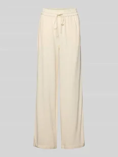 Spodnie z wysokim stanem damskie SELECTED FEMME;Mieszanka wiskozy i lnu;Szeroka nogawka;Model ‘VIVA-GULI’;Elastyczny pas;Tunel;Szerokość w pasie w rozmiarze 36: 37 cm;Długość wewnętrzna nogawki w rozmiarze 36: 80 cm