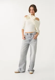 Jeansy relaxed fit ze średnim stanem i pięcioma kieszeniami. Szerokie nogawki. Zapięcie na suwak i metalowy guzik z przodu.
