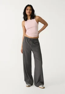 Stradivarius Długie luźne spodnie eleganckie Ciemnoszary M