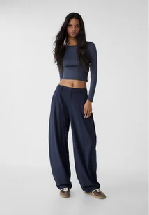 Stradivarius Eleganckie spodnie baggy z przeszyciem Morski 38