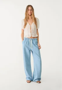 Stradivarius D35 Luźne dżinsowe spodnie ze sznurkiem ŚREDNIOJASNY NIEBIESKI DENIM XS