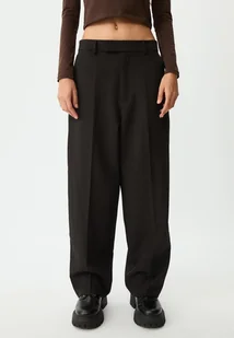 Spodnie casual do noszenia na co dzień ze średnim stanem i szlufkami w pasie. Przednie kieszenie i imitacje kieszeni z wypustką z tyłu. Luźna nogawka o prostym kroju. Krzyżowe zapięcie z przodu na zamek błyskawiczny, wewnętrzny guzik i metalowy element.